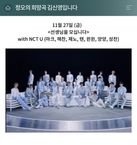 11월 27일 금요일 “정오의 희망곡” 12:00 ~ 14:00 에 나인티스 러브 팀이 나온다고 하넹 :)