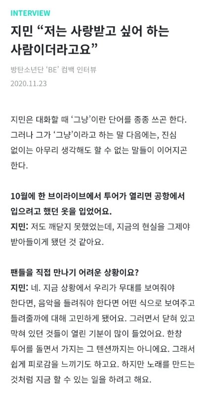 인터뷰 올라온 건데 ㄹㅇ ㅠㅠ