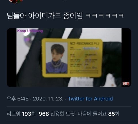 아이디카드라는데 미친것들아