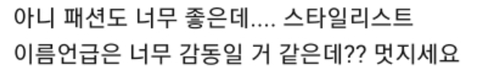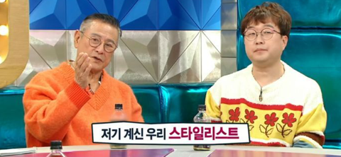 "저기 계시는 우리 스타일리스트 강난희씨가 저를 이렇게 맨들어놨어요.
