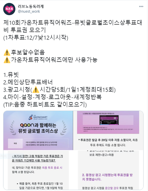 새로운 투표 또 생겼당(가온차트뮤직어워즈-뮤빗글로벌초이스상)
