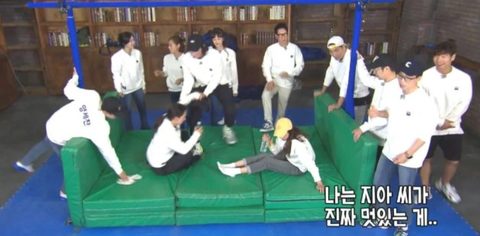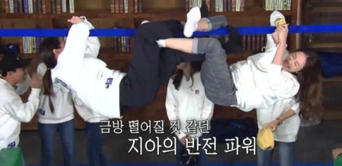 그리고 이지아가 철봉에서 떨어지자 혹시 해서 바로 모자 씌워줌