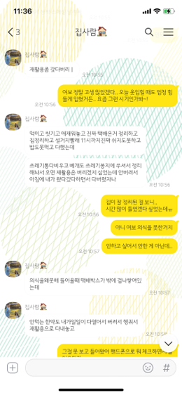 아내가 집 앞에 내다 놓은 쓰레기들이 잔뜩 있었어요.