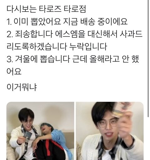 븨앱에서 타로점컨셉으로 시즈니 23분의1 포카운세 봐줬는데 밑에 사진처럼 말해서 여기 사기꾼 아니냐고 놀렸는데,,,,,
