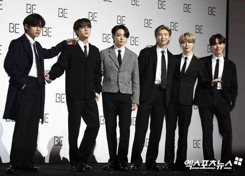 슈가 어깨 회복 중이라 기자회견 참석 못했는데 단체사진 공식 자리로 서서 슈가 자리 비워둠