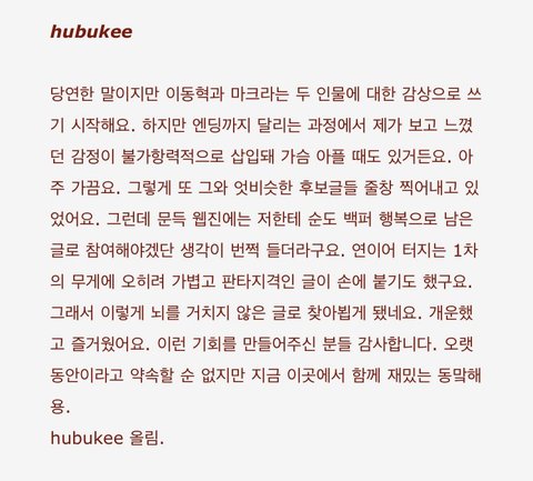 후부키의 동맠 웹진 후기...