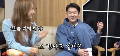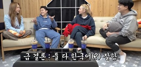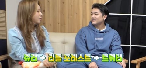 요즘 고정으로 켠왕켜놩을 같이 진행하고 있는 로켓펀치 쥬리(일본인)와 벤지(미국국적)의 한국어 끝말잇기 대결