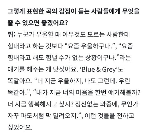 그만큼 ‘Blue & Grey’를 우울한 곡으로 생각하고 썼나 봐요.