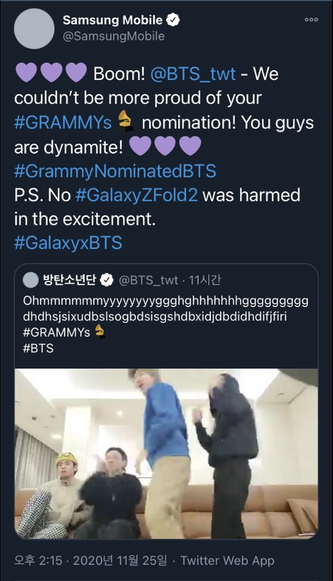 오늘 새벽 방탄이 그래미 노미 리액션 올려줬는데