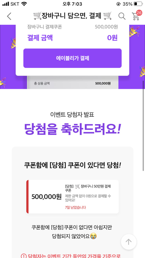 장바구니 담으면서 맘은 벌써 당첨이엇는데 ㅅㅂㅠ