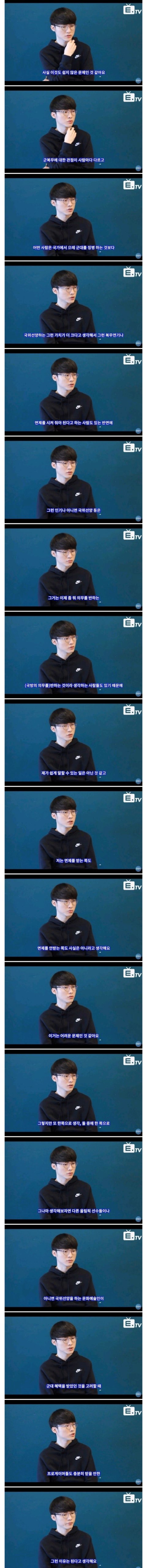 남잔데 안 보냈음 좋겠음 비단 페이커뿐만 아니라 다른 여러 분야 선수들, 빌보드로 국위선양하는 가수들 등등 안보냈음 좋겠음 한창때 거기가서 삽질하고 시간낭비하는거 일반인으로 충분함. 근데 일반인 남자가 거기가서 고생하는건 사실이고 민감할수있는 문제는 맞음 그러니까 남자들이 꿀빨면서 배아파.지랄하네 이런 문제로 보지는 말아줬음 좋겠음