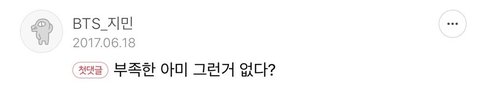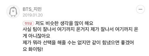지민이 공카요정이라 불리는거 알지...? 데뷔 1000일이 될때까지 900번 이상을, 데뷔 1500일될때까지 1100일정도를 들어와준 만큼 진짜 예쁜말도, 위로의 말도 엄청 해줬는데... ㅠㅠㅠ 이렇게 살아가자고 묵묵하게 힘내자고 해주고,