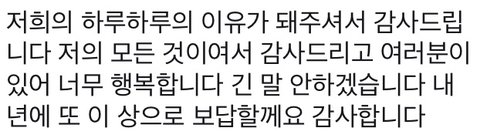 레전드 무대 찍었던 2018 멜뮤 대상 받았을 때 수상소감인데,,, 울먹울먹 하면서 그냥 여러분 없으면 안된다는 듯이 하루하루의 이유가 되어줘서 고맙다고 했고..