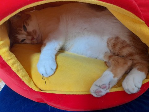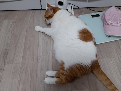 어느날 출근할때 지 집에 들어가서 눈풀린채 자고 있는 도칠이 사진을 찍었음.