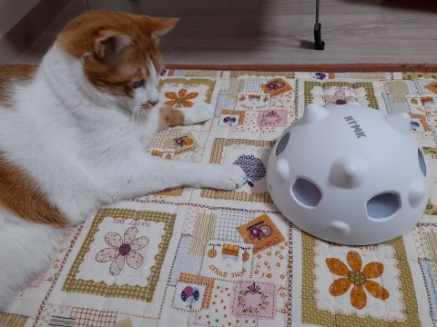 앉아서 쉬고 있길래 장난감 앞으로 가져다줬음.