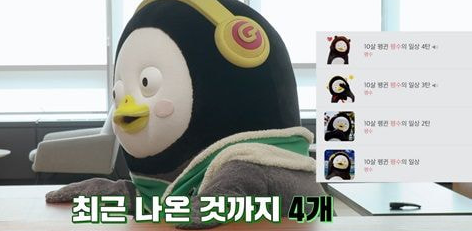 펭수 이모티콘 4개가 있는데 3개 있어서 신난 모르모트 PD