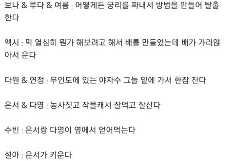 * 멤버들이 뽑은 멤버별 무인도 갇혔을때 반응 *