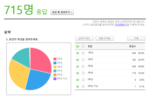 약 하루의 시간 동안 715명이 설문조사에 답해주셨습니다.