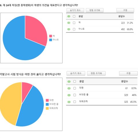 또한 1학기와 2학기 코로나 확산에도 불구하고 대면이라는 문제점에 대해 학생들의 의견을 수용하고 있지 않습니다. 1학기와 2학기 모두 일반 학생이 전교생의 설문조사를 받았으며, 이는 공식적인 자료로 사용될 수 없지만 총학 측에서는 뒤늦게 한다거나 2학기에는 아예 하지 않고 있습니다.