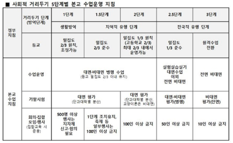 - 현재 사회적 거리 두기 2단계로 격상 후 교육부에서 비대면 권고를 하였지만, 앞서 말씀드렸던 것처럼 2.5단계에 실험 실습을 제외한 비대면, 3단계에 가서야 전면 비대면을 원칙으로 내걸고 있습니다.