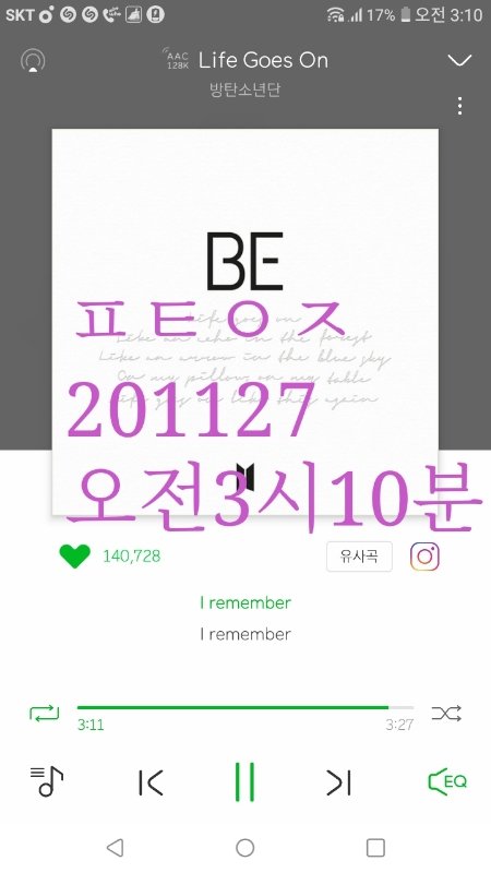 하나하나 하 ..여태 탄이들 앨범 매번 역대급이다고 했지만 이번 탄이들의 자체제작앨범 BE가 내 인생 최애 앨범ㅠㅠ