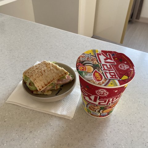 샌드위치는 반만먹구 퍽퍽하니까 컵라면이랑 뿌셨습니둥
