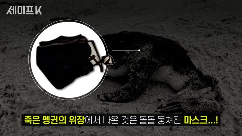 펭귄 뱃속에서 마스크가 나왔다고 함…