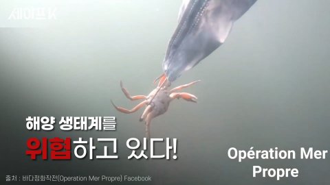 게가 마스크에 걸려서 발버둥치는데