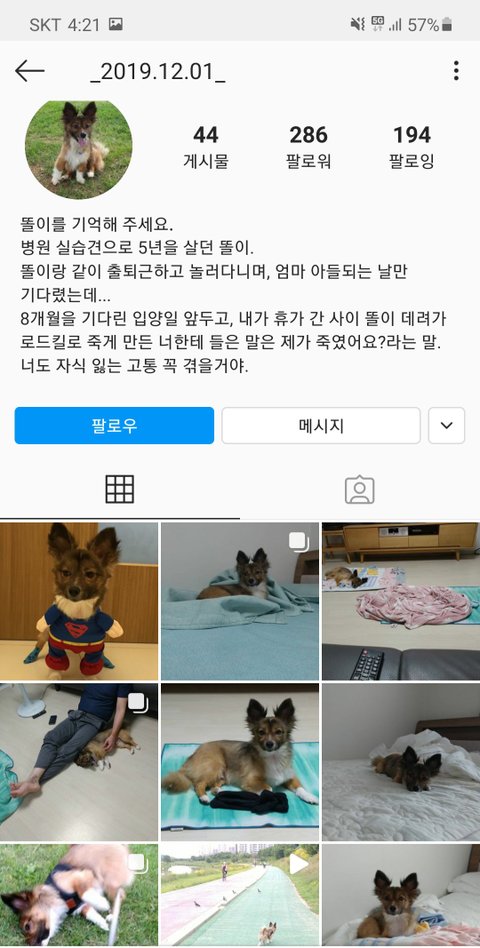 막고 싶어서인지 사람들에게 죽은 똘이를 기억해 달라고 글과 사진을 올리기 시작한거 같아