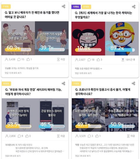 다양한 주제들 중에서 선택하고 포인트 받는 앱테크앱이지만
