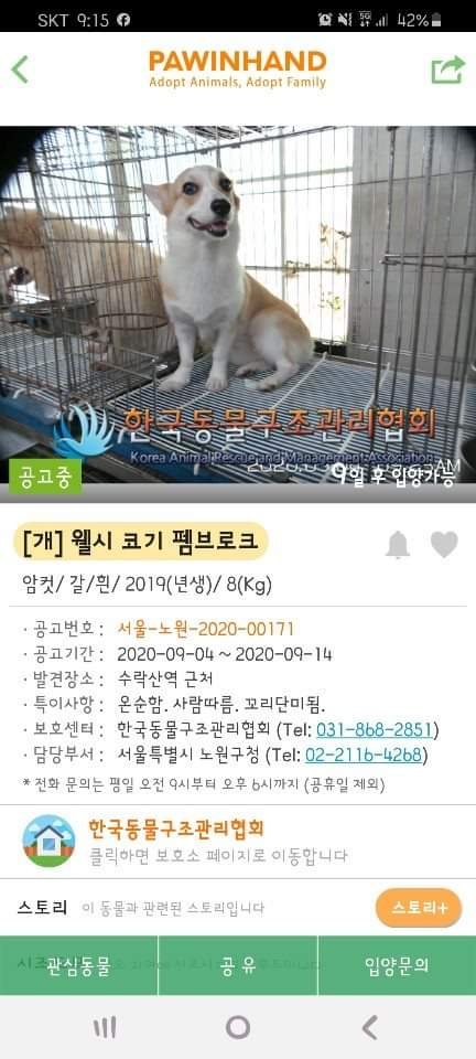 그 강아지가 있는 "한국동물구조협회"에 연락을 하게 되었고
