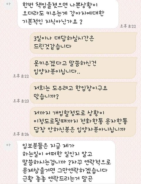 이까지가 저와 입양자가 나눈 대화내역이였습니다.