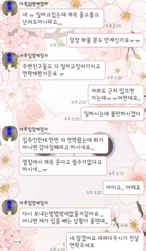 이까지가 저와 입양자가 나눈 대화내역이였습니다.