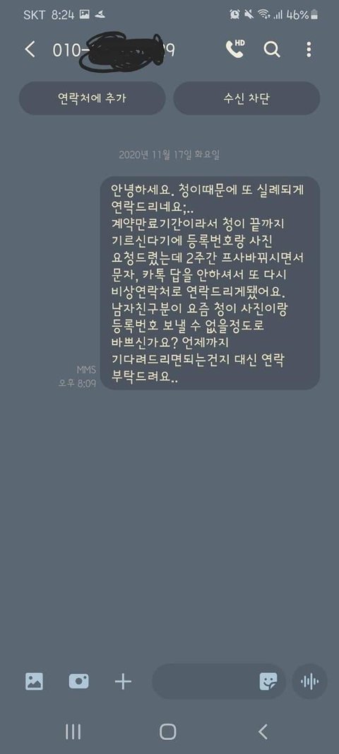 (다시 말하지만 전화, 카톡 안읽고 안받음. 차단했을 확률이 높음. ㄹㅇ생각이 있나 없나;)