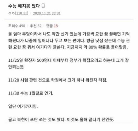 수능 연기 된다고 예언 한 사람 다시 오게 해봐 진짜 그 사람 말대로 일이 일어나는 거 같음