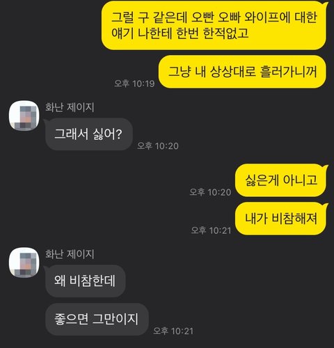 그사람이 유부남인거 속이고 만난 여자가 나 혼자만은 아니겠지? 설사 내가 처음이라 해도 또 이러겠지? 빨리 헤어나오고 싶다... 그냥 빨리 내가 헤어 나올 수 있게 말들 좀 해줘.. 무슨 말이라도 좋으니까.....