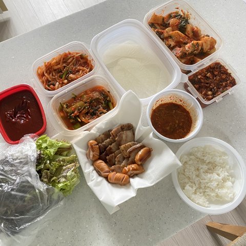 삼겹살 번쩍 비엔나 번쩍 거하게 차려먹었습니둥