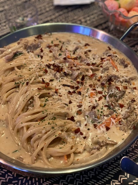 신나게 2차 크림파스타뿌셨어요 매콤하니 아주맛나더라구요? 기본안주 색동뻥튀기 맛나요 다들아시죠? (아시면 대충나이가ㅎㅎ)