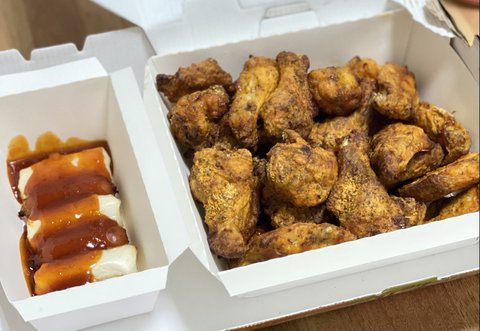 닭다리하나들고 양쪽에 두가지 소스찍어서 입에넣으면 정말 감탄이 나와요 호호