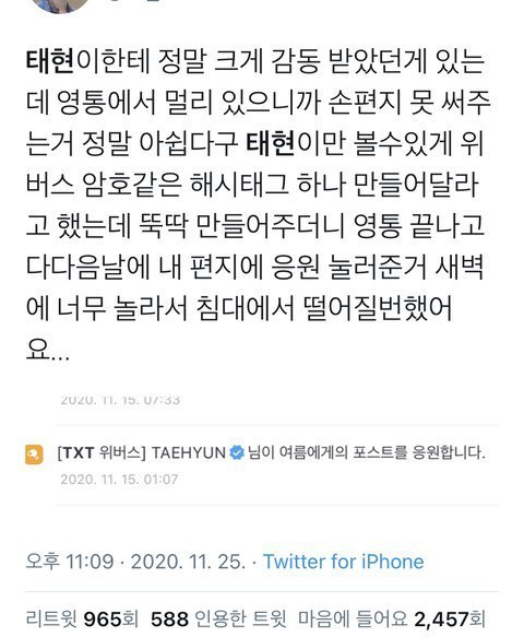 에휴 얘 팬싸에서 해달라는 애교 다 해주는 애고 멤들 중에서도 소통이나 팬사랑 탑티어 속하는 애임. 팬싸에서 뿌잉뿌잉 안해줬다 어쩐다 하는 것도 애교부리면서 뿌잉뿌까지가 마지노선이에여~~ 이런거고. 위버스로 편지쓰고 싶다는 팬한테 해시태그 만들어주고 잊지않고 며칠 뒤 새벽에 검색해 들어가서 응원하기도 눌러주고.. 애교해달라는 댓글로 도배돼서 컴백 전 브이앱 진행 안되어 다들 당황하던 상황에서 그 한 마디 한거가지고 이런 애를 몇개월동안 패는거야. 먹금하려다가 너무 열뻗쳐서씀