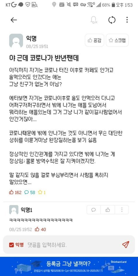 코로나타령하면서까는애들 ㅈㄴ 찐따같음