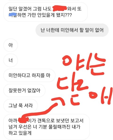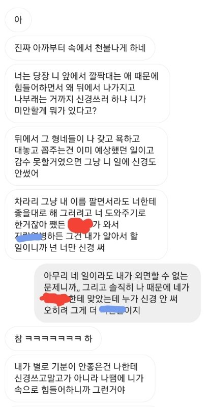 그래서 디엠으로 미안하다고 이제와서 염치없겠지만 남자친구인척 안해줘도 된다고 그랬고 걔가 왜냐길래 이유 설명해줬더니 걔가 나한테 화 엄청내면서 뭐 잘 끝나긴 했지만.. 살면서 나한테 화낸적은 처음이어서 무서웠어 초반에는 걔가 왜ㅎㅎ 이랬다가 내가 몇마디하니까 갑자기 돌변