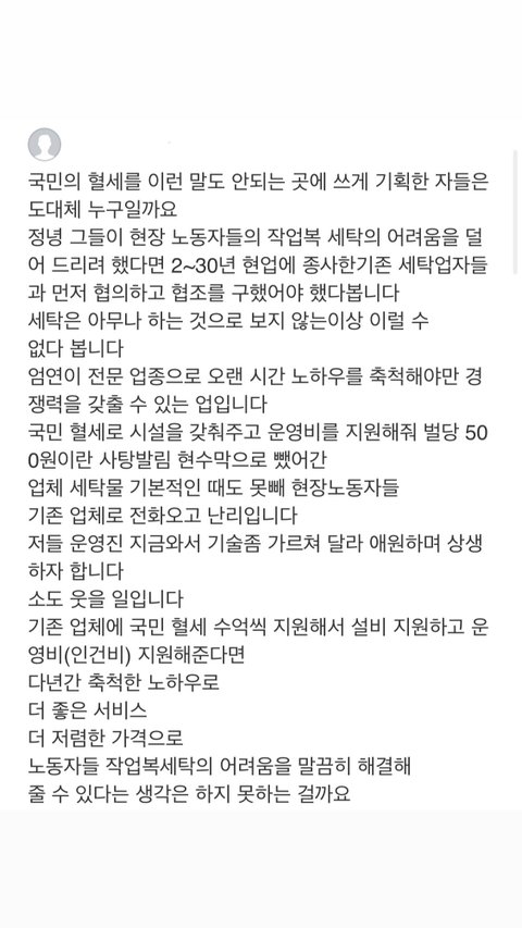세탁비를 지급해준다면, 국민의 세금으로 지원해주는 것일거고.