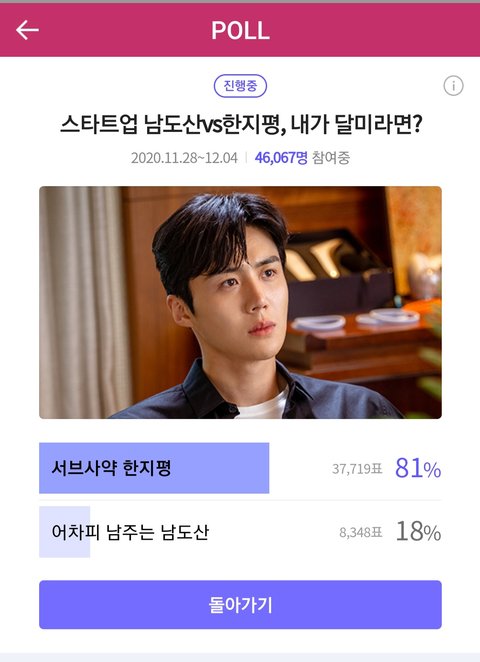 네이버에서 투표하는건데 표차이 봐라... 진남주가 이렇게 지지율이 적으면 작가가 스토리 쓰는게 문제 있는거 아니냐??