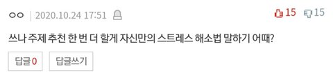 나는 요즘엔 스트레스 받으면 유튜브로 웃긴영상 찾아보거나 친구랑 만나서나 통화하면서 수다 엄청 떨면서 최대한 잊어버리려고 하는편이야!