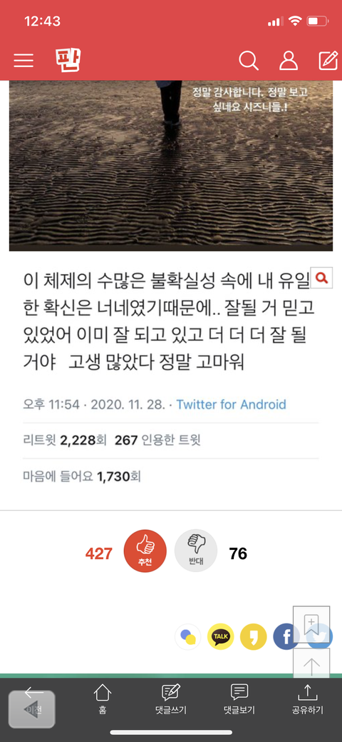 체제의 불확실성 속에 유일한 확신이 너네였다 새벽에 조카 감동받음 엔시티 대상 가수 축하한다 사랑해 앞으로 더 나아갈 일만 남음