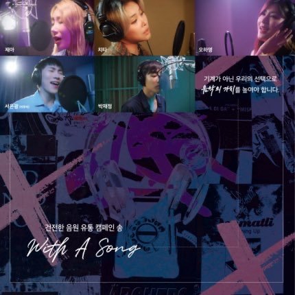 브아걸 제아랑 박재정, 비투비 서은광, 에이핑크 오하영, 치타에 김이나 작사로 사재기근절송 있더라 (제목이 with a song이야) 친구가 알려줘서 봤는데 무료음원 처음봄... 취지도 좋은데 노래도 좋고 진짜 사재기 없어졌으면 좋겠다
