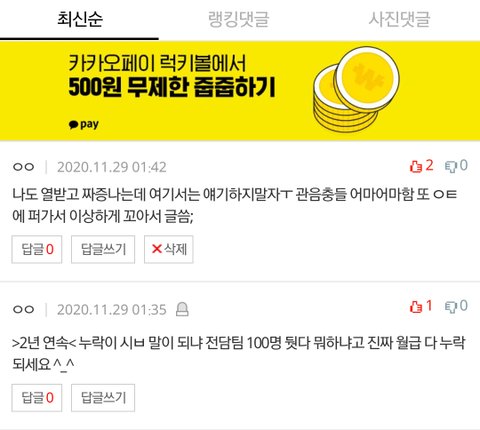 진짜 누락 열받고 환멸난다