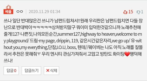 톡선에 아1민데 엔시티 입덕할것같다는 글에 친절한 설명과 함께 영업도 같이해서 베플까지 먹엇엉!! 하 정말루 소중한 나의 엔시티
