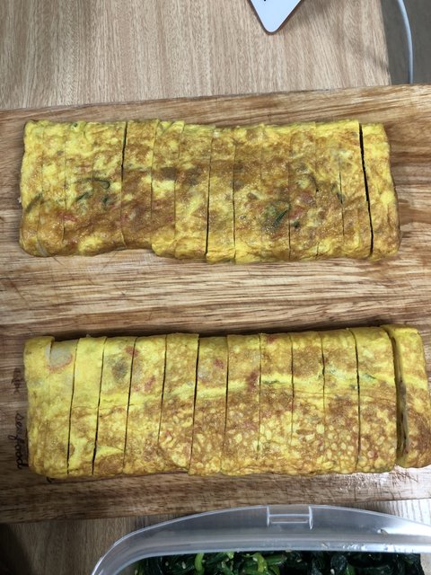 계란말이는 최고의 밥반찬이죠..대량생산하고 두고두고 먹습니다. 단면은 왜없죠? 아래에 다른 날 만들어 먹는 계란말이에 단면으로 만족하는걸로 해요.